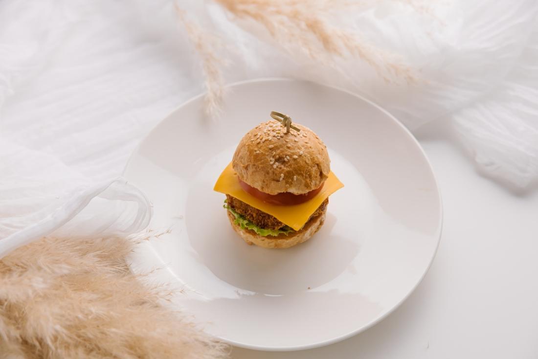 Булочка, котлета куриная, помидор, соус для бургеров, лист салата, сыр Чеддер. Порции по 12 шт.
